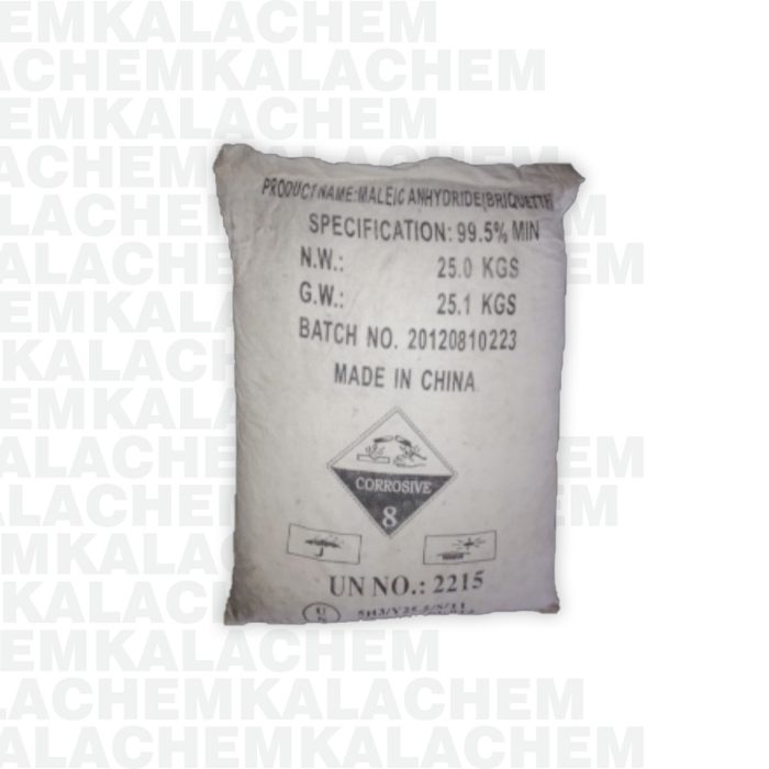 5. حلالیت: انیدرید مالئیک در آب و بسیاری از حلال‌های آلی حل می‌شود و به راحتی با آب واکنش داده و تبدیل به اسید مالئیک می‌شود.